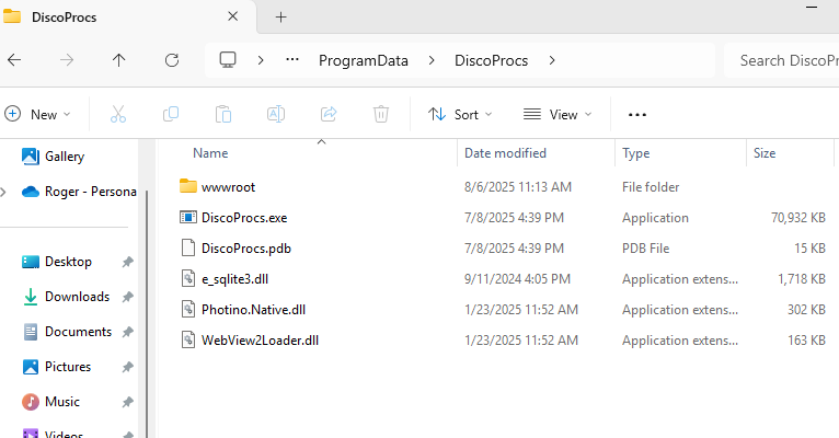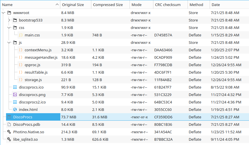 I’ve highlighted (in blue) the main executable file (DiscoProcs).