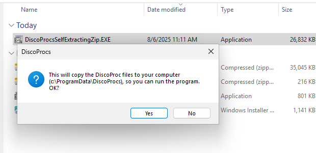 You can download the self-extracting zip for Windows to simply copy all the files you need to run DiscoProcs.