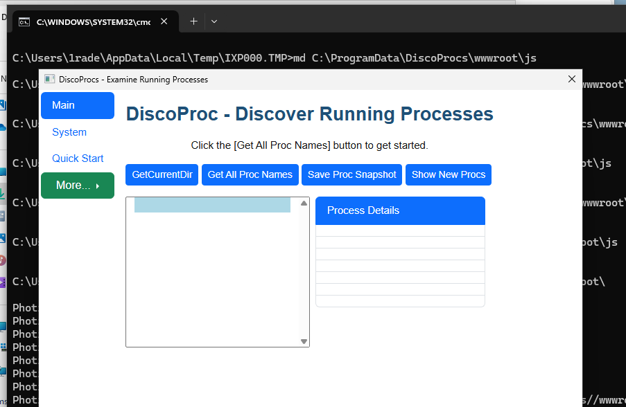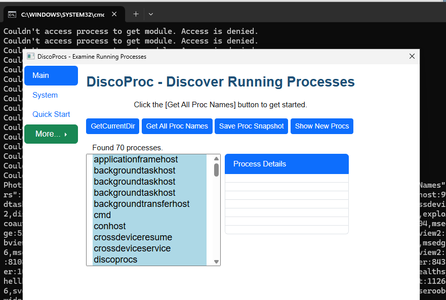 Go ahead and click the [Get All Proc Names] button to display all the running processes on your system.